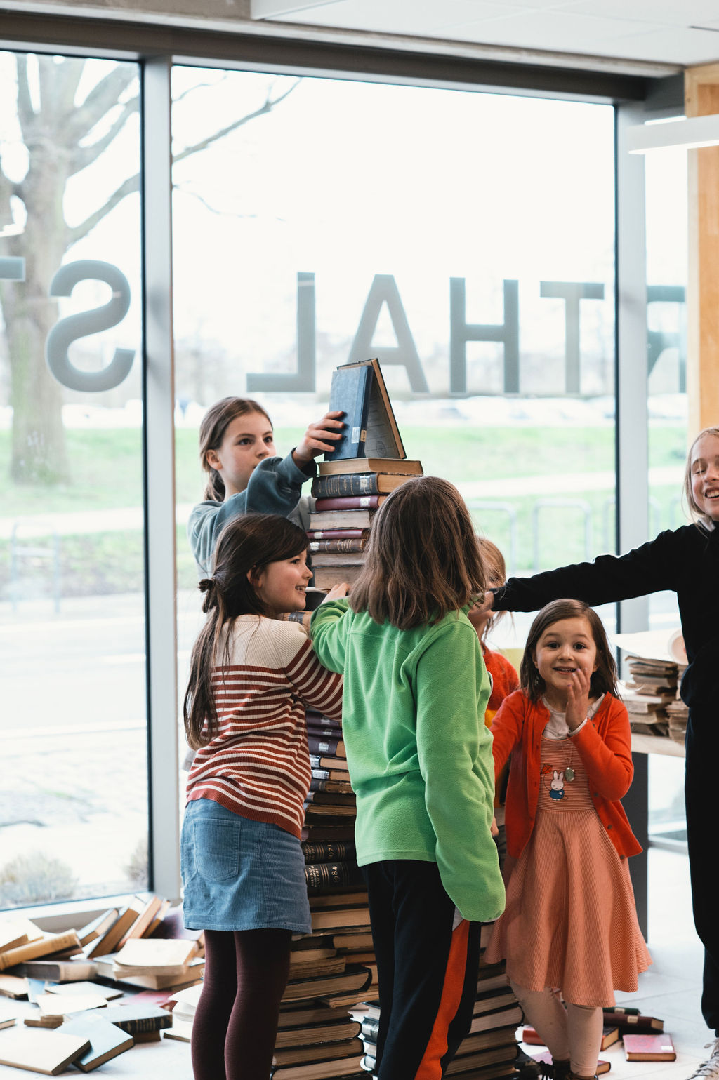 – In het kader van de jeugdboekenmaand met thema ‘Sport en spel’, organiseerden we samen met de bib en de jeugddienst een wandeltocht door Lier met verschillende tussenstops waar de kinderen opdrachten moesten volbrengen. Bij één van de opdrachten moest er bijvoorbeeld met boeken een grote Eiffeltoren gebouwd worden om Parijs ook een beetje naar Lier te brengen.